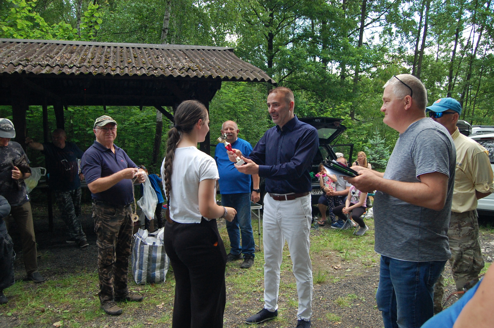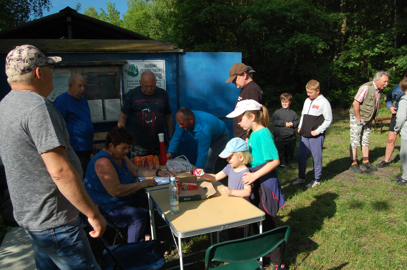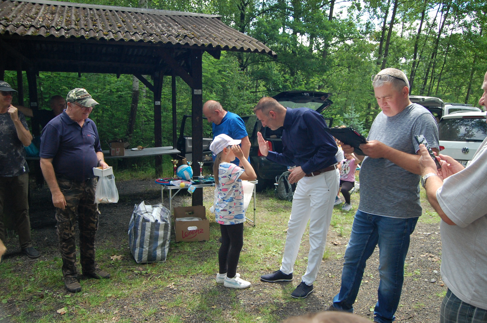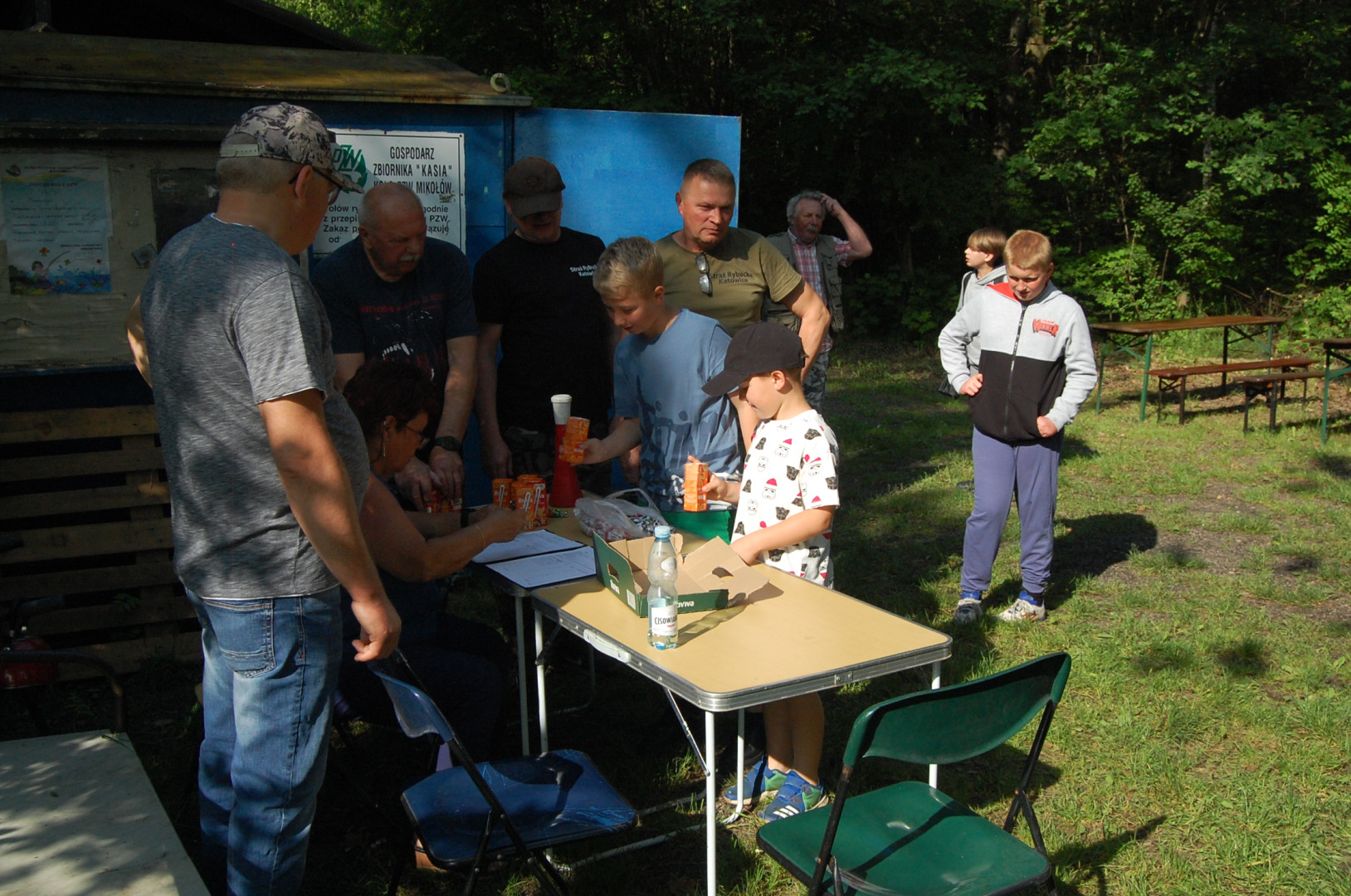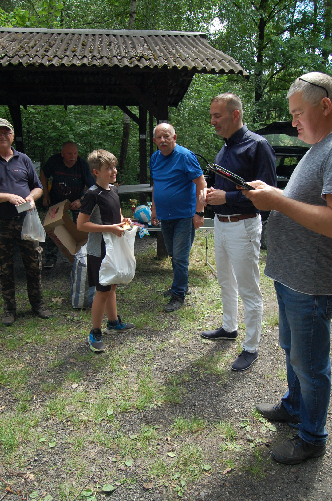 W dniu 01 czerwca 2025 r na terenie stawów "Kaśka" odbył się kolejny festyn wędkarski z okazji Dnia Dziecka. Do zabawy w łowienie ryb zgłosiło się 21 młodych adeptów wędkarstwa, którzy rywalizowali w kategoriach wiekowych 5-9 lat i 10-14 lat. Przy pięknej pogodzie, w doskonałych humorach i przyjacielskiej atmosferze, bardzo szybko upłynął czas przeznaczony na łowienie rybek. Wszyscy uczestnicy zaliczyli złowienie swoich rybek, które w tym dniu bardzo dobrze brały. W kategorii wiekowej 5-9 lat najwięcej złowili: Paulina Rzepiak, Tymon Stolicki i Kaja Rzepiak. W Kategorii wiekowej 10-14 lat najlepsze wyniki osiągnęli: Dawid Fąferek, Liljana Rzepiak oraz Alex Trepizur. Po emocjonujących łowach przyszedł czas na kiełbaskę z grila, której nie zabrakło również dla opiekunów młodych wędkarzy. Ponadto wszystkie dzieci otrzymały słodkie upominki, a kol. Czesław Jarczyk ufundował dla wszystkich pamiątkowe medale i karty rabatowe do sklepu wędkarskiego "Labrax". Dodatkową niespodzianką i atrakcją było wręczenie pucharów i nagród przez Zastępcę Burmistrza Mikołowa Mateusza Handela, z którym młodzi wędkarze mieli również okazję "przybić piątkę".