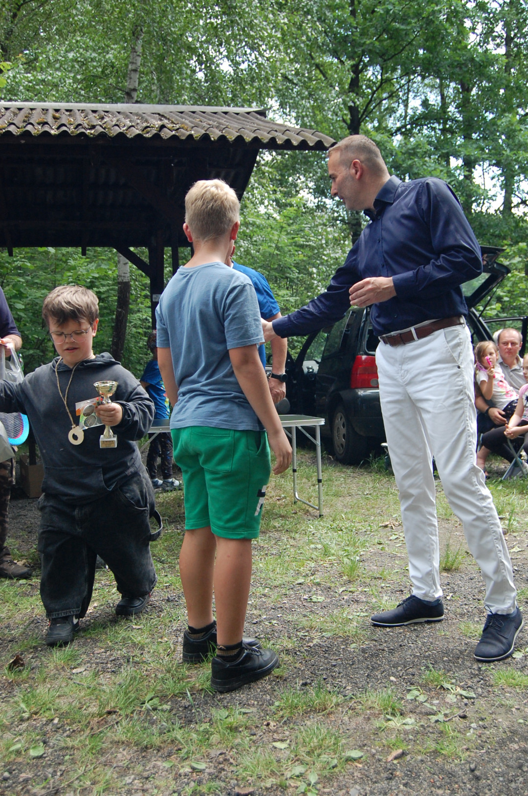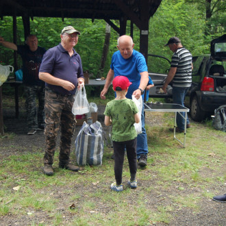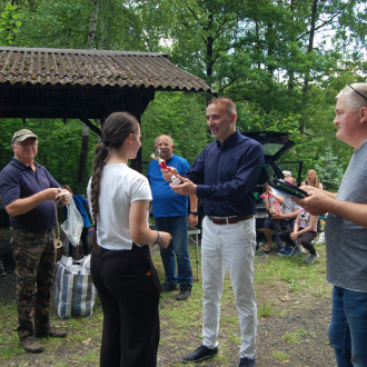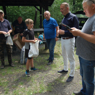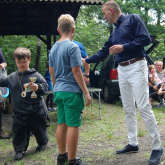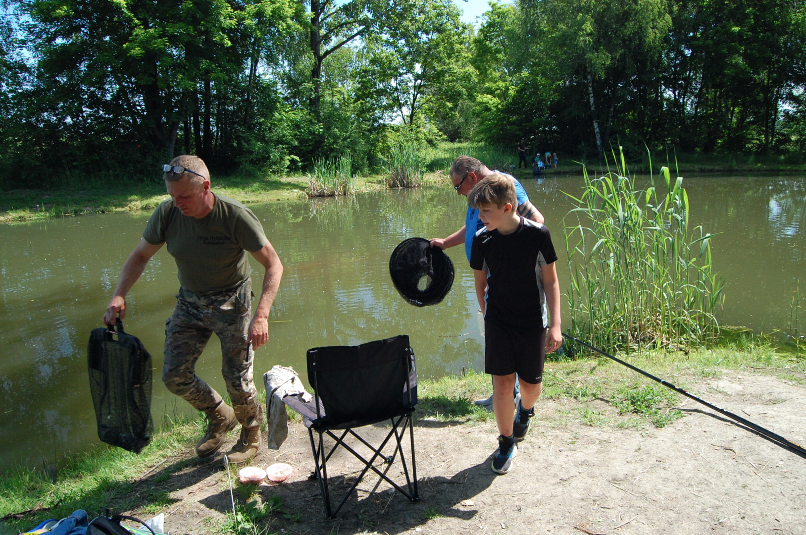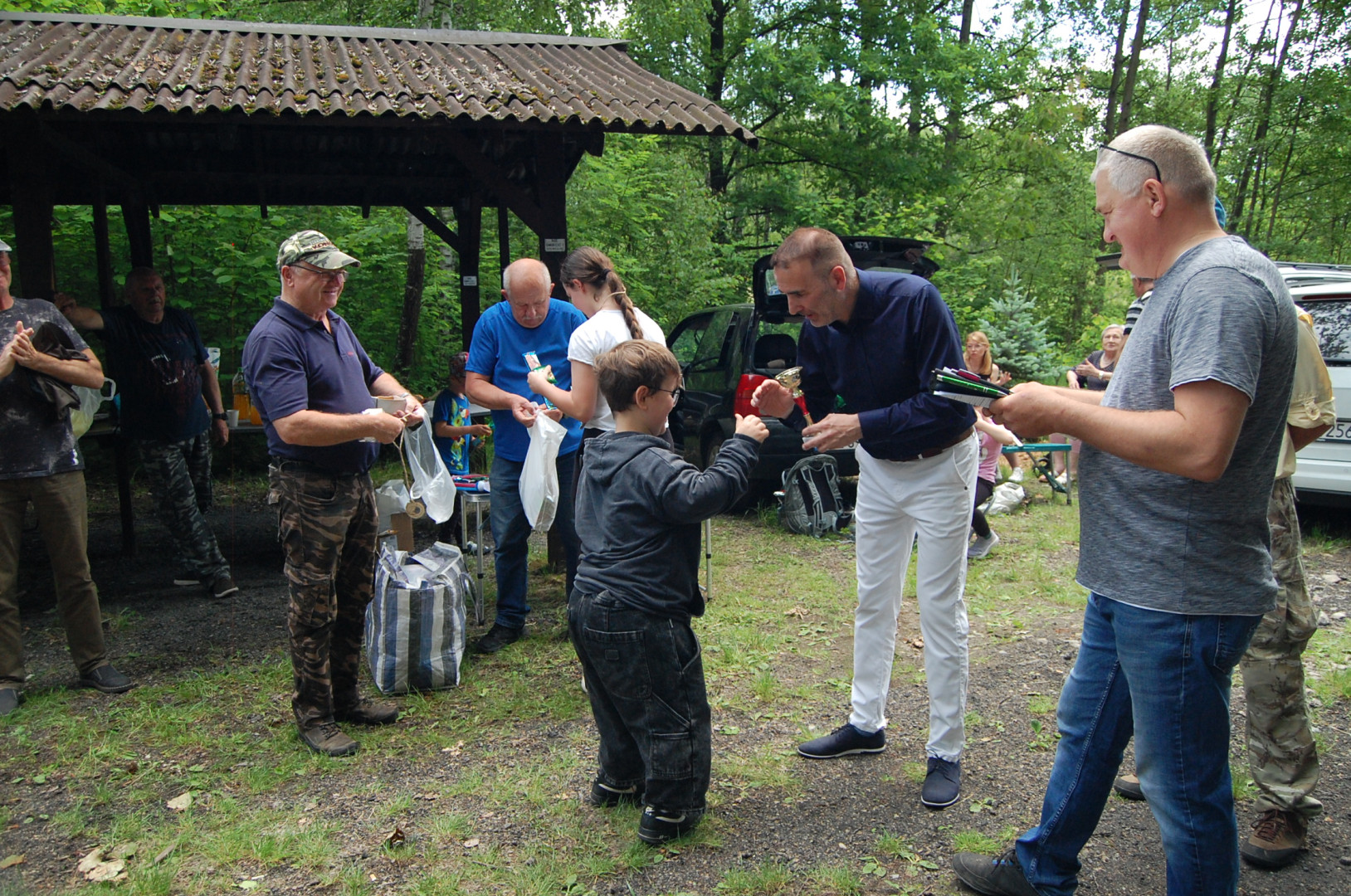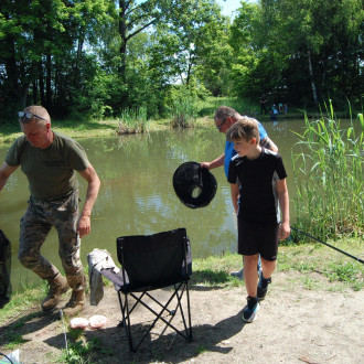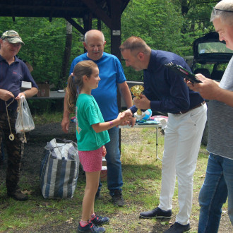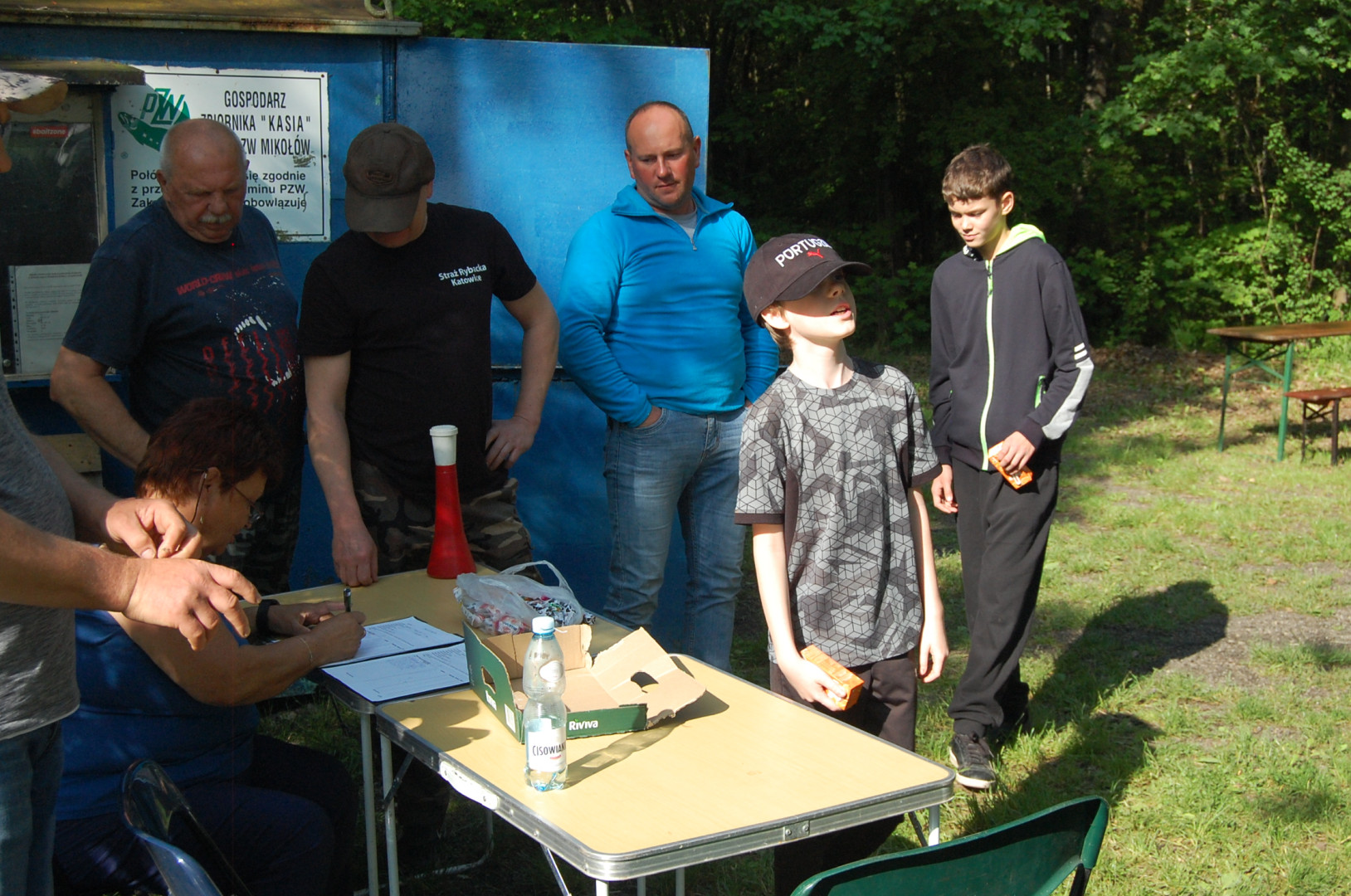 W dniu 01 czerwca 2025 r na terenie stawów "Kaśka" odbył się kolejny festyn wędkarski z okazji Dnia Dziecka. Do zabawy w łowienie ryb zgłosiło się 21 młodych adeptów wędkarstwa, którzy rywalizowali w kategoriach wiekowych 5-9 lat i 10-14 lat. Przy pięknej pogodzie, w doskonałych humorach i przyjacielskiej atmosferze, bardzo szybko upłynął czas przeznaczony na łowienie rybek. Wszyscy uczestnicy zaliczyli złowienie swoich rybek, które w tym dniu bardzo dobrze brały. W kategorii wiekowej 5-9 lat najwięcej złowili: Paulina Rzepiak, Tymon Stolicki i Kaja Rzepiak. W Kategorii wiekowej 10-14 lat najlepsze wyniki osiągnęli: Dawid Fąferek, Liljana Rzepiak oraz Alex Trepizur. Po emocjonujących łowach przyszedł czas na kiełbaskę z grila, której nie zabrakło również dla opiekunów młodych wędkarzy. Ponadto wszystkie dzieci otrzymały słodkie upominki, a kol. Czesław Jarczyk ufundował dla wszystkich pamiątkowe medale i karty rabatowe do sklepu wędkarskiego "Labrax". Dodatkową niespodzianką i atrakcją było wręczenie pucharów i nagród przez Zastępcę Burmistrza Mikołowa Mateusza Handela, z którym młodzi wędkarze mieli również okazję "przybić piątkę".