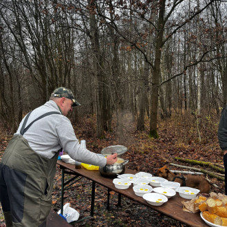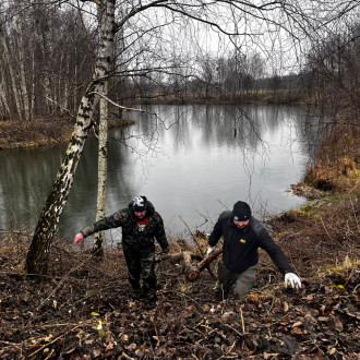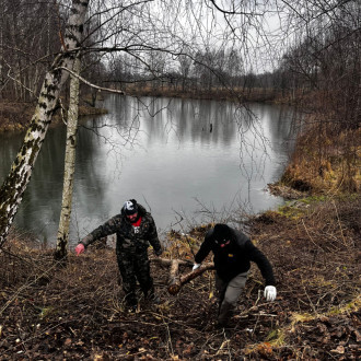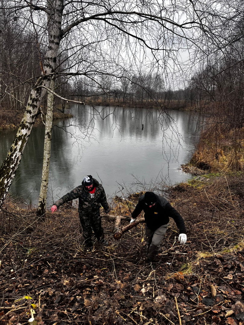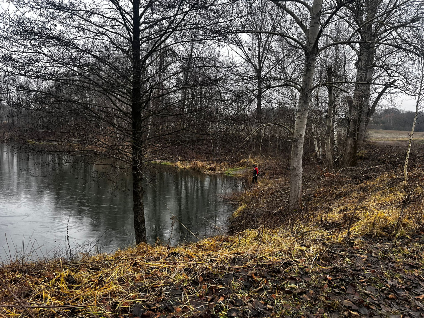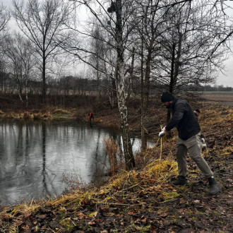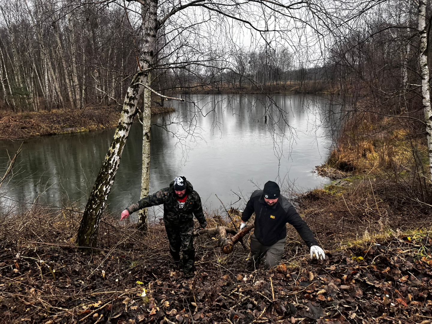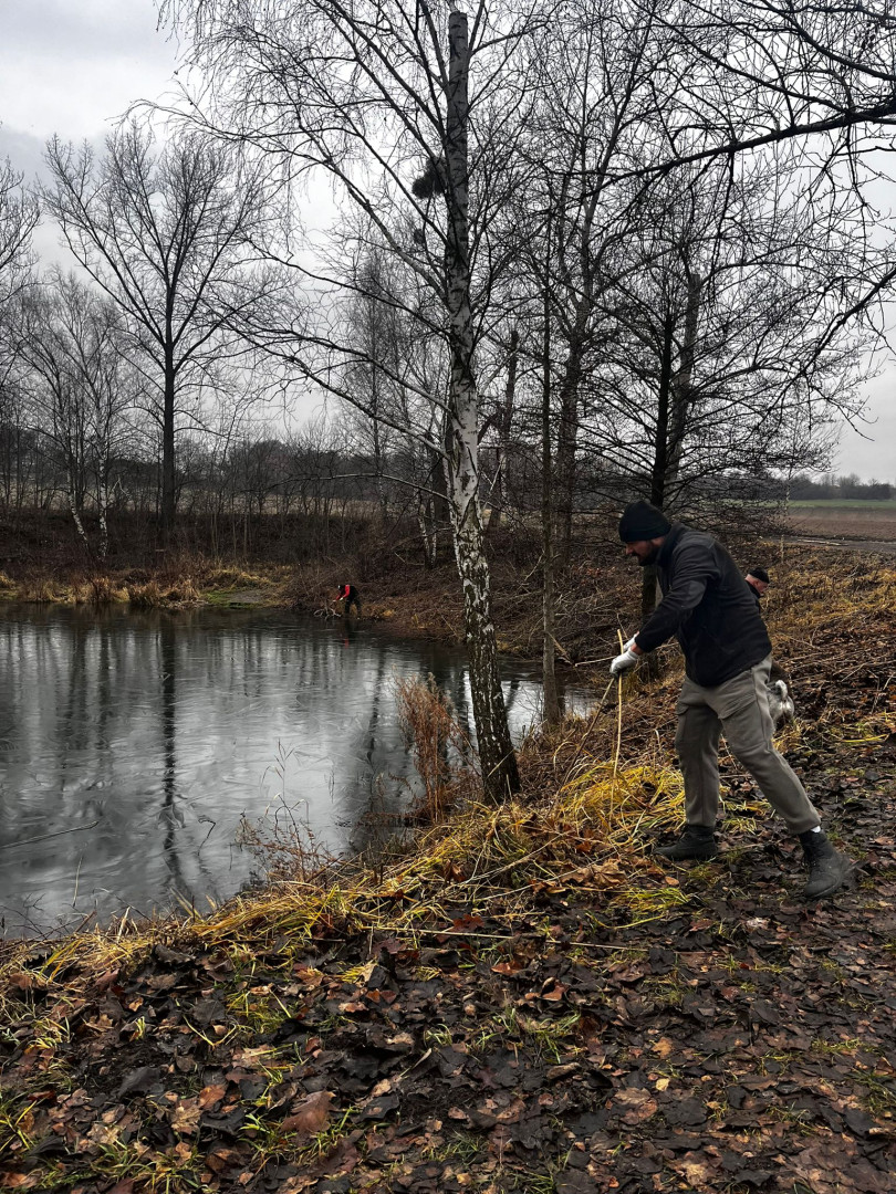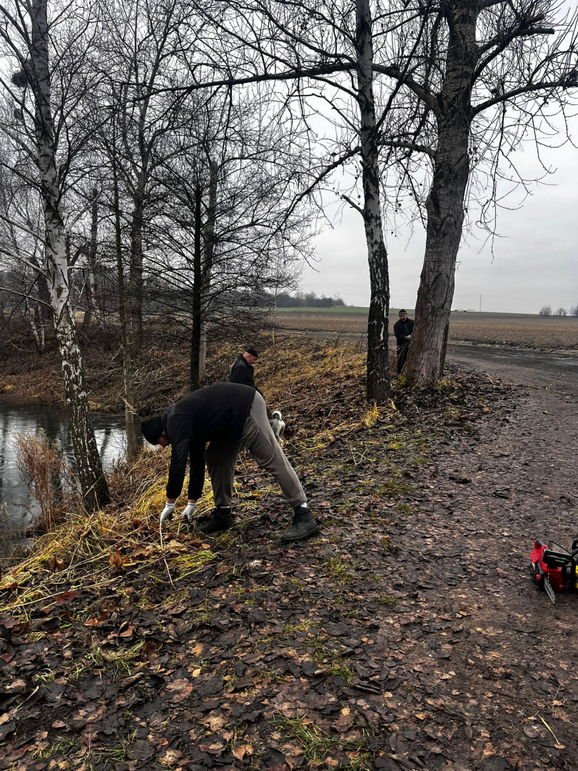 W połowie lutego br. przeprowadziliśmy pierwsze w tym roku prace porządkowe na stawach "Kasia". Głównym zadaniem była wycinka samosiejek, lecz przy okazji poprawiono stanowiska wędkarskie i dostępność części brzegu "Małej Kasi". Zebrano również zeszłoroczne śmieci, które o tej porze roku nie znikają w trawie. Po ciężkiej pracy był też czas na posiłek regeneracyjny i pogaduchy przy ognisku.